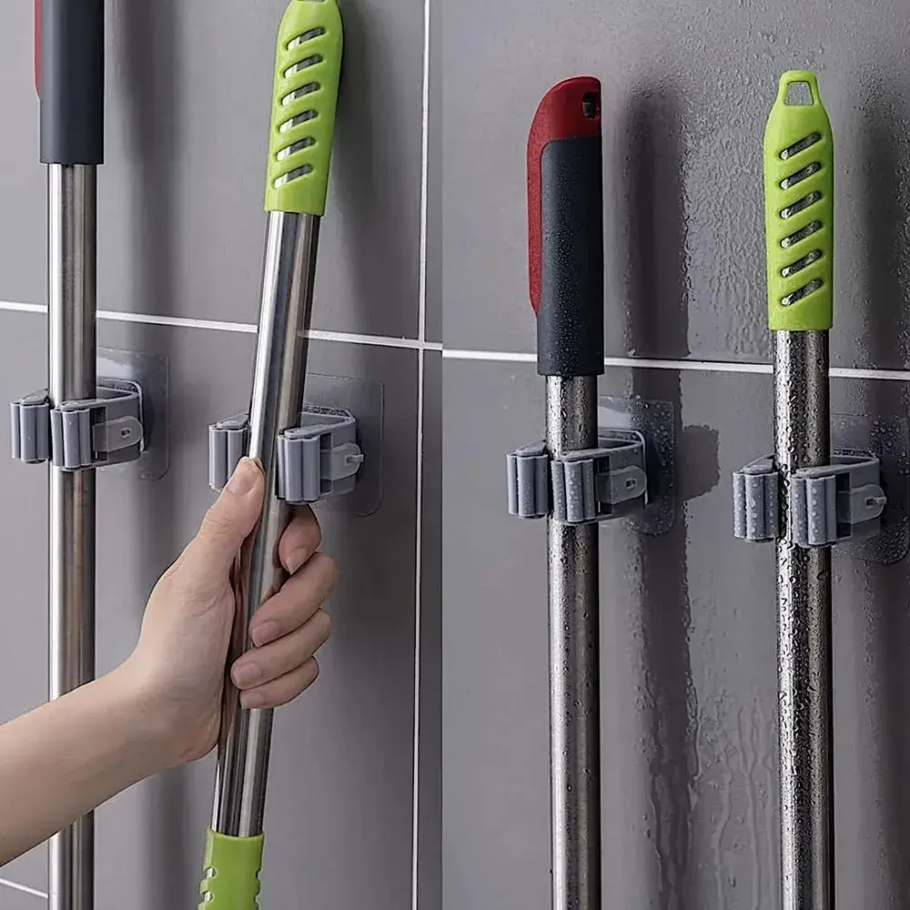 Комплект из специальных держателей поможет решить извечную проблему. Часто бывают ситуации что швабры, щётки и системы для мытья окон, сгоны и прочий инвентарь не куда ставить.