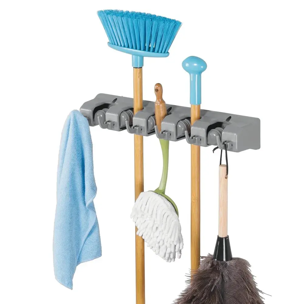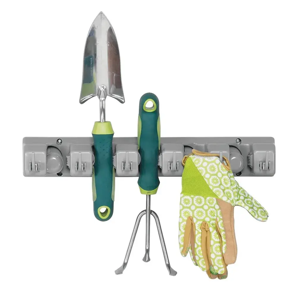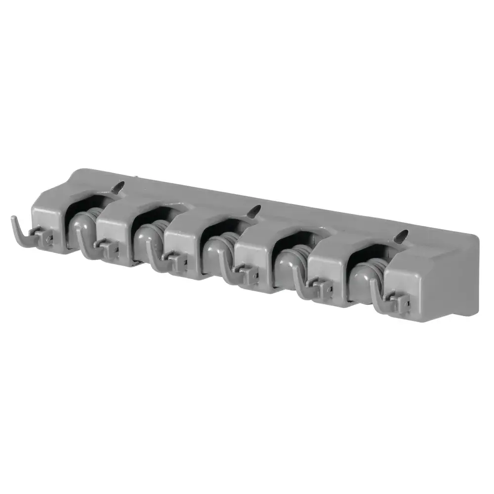 Настенный органайзер-держатель для швабр, инструментов, садовых принадлежностей, спортивного снаряжения. Незаменимая вещь для создания порядка и организации хранения в быту. Пять жестких резиновых захватов на этой полосе для хранения обеспечивают функции "защелкивания" и "отсоединения", благодаря которым ваши инструменты остаются на месте до тех пор, пока они вам не понадобятся. Выдвижные крючки могут быть выдвинуты наружу или задвинуты, в зависимости от ваших потребностей хранения. Выдвижные захваты внутри каждой канавки для хранения имеют резиновые поверхности, которые плотно удерживают швабры, метлы и другие необходимые инструменты на месте. В длину: 39, 6 см.
