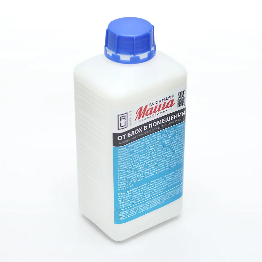 Маша «От блох в помещении» - эффективный препарат в виде концентрата эмульсии для мгновенного уничтожения блох в помещениях (в квартирах, дачных домах, в подвалах, на промышленных объектах и т.д.). Высококонцентрированное средство позволит истребить насекомых в течение нескольких часов после обработки. Длительная защита - обладает остаточной активностью до 30 дней. Состав средства из трех активных компонентов специально разработан для направленного и быстрого уничтожения блох. Действует на насекомых контактно при их соприкосновении с обработанными площадями. Не вызывает привыкание, а также помогает бороться с насекомыми, у которых выработалось привыкание к другим ядам. Обработанные участки безопасны для людей и животных.